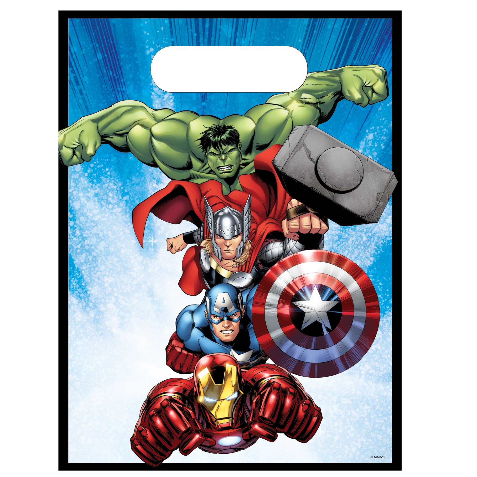 Plastic bag measuring 16.5 cm x 23 cm with Avengers motif.