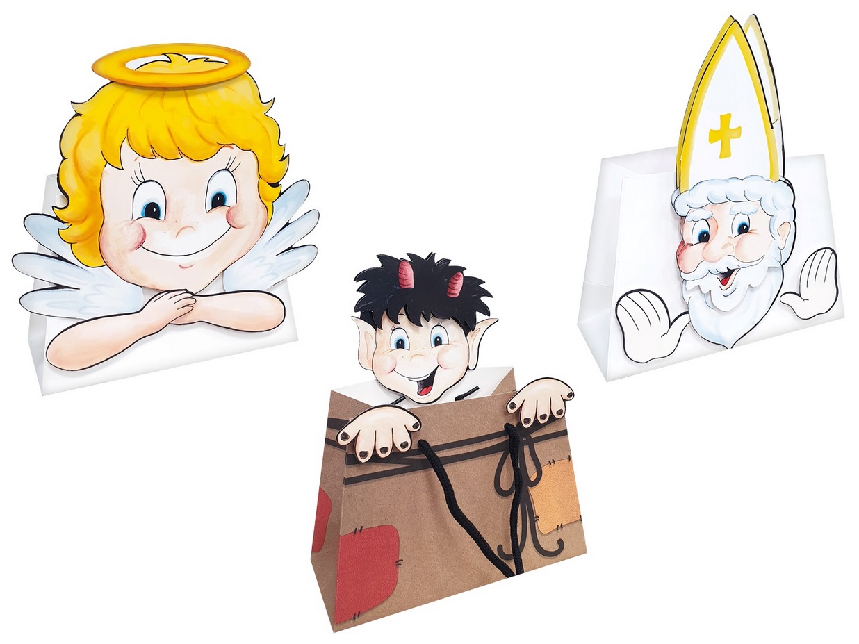 Paper gift bags with the motif of Santa Claus, a lovely angel and a cheerful jester!Technical specifications are subject to change without notice. Images are informative only.