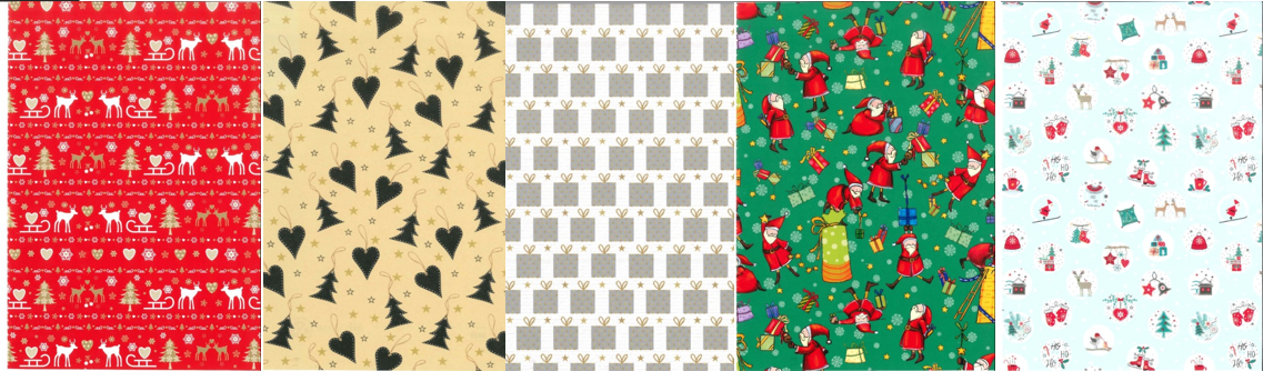 Quality wrapping paper for gifts with a Christmas motif, 5 motifs.