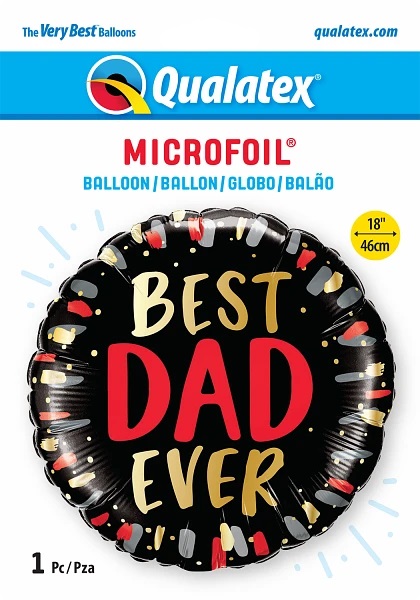 Foil balloon in the shape of a circle with the words Best Dad Ever!