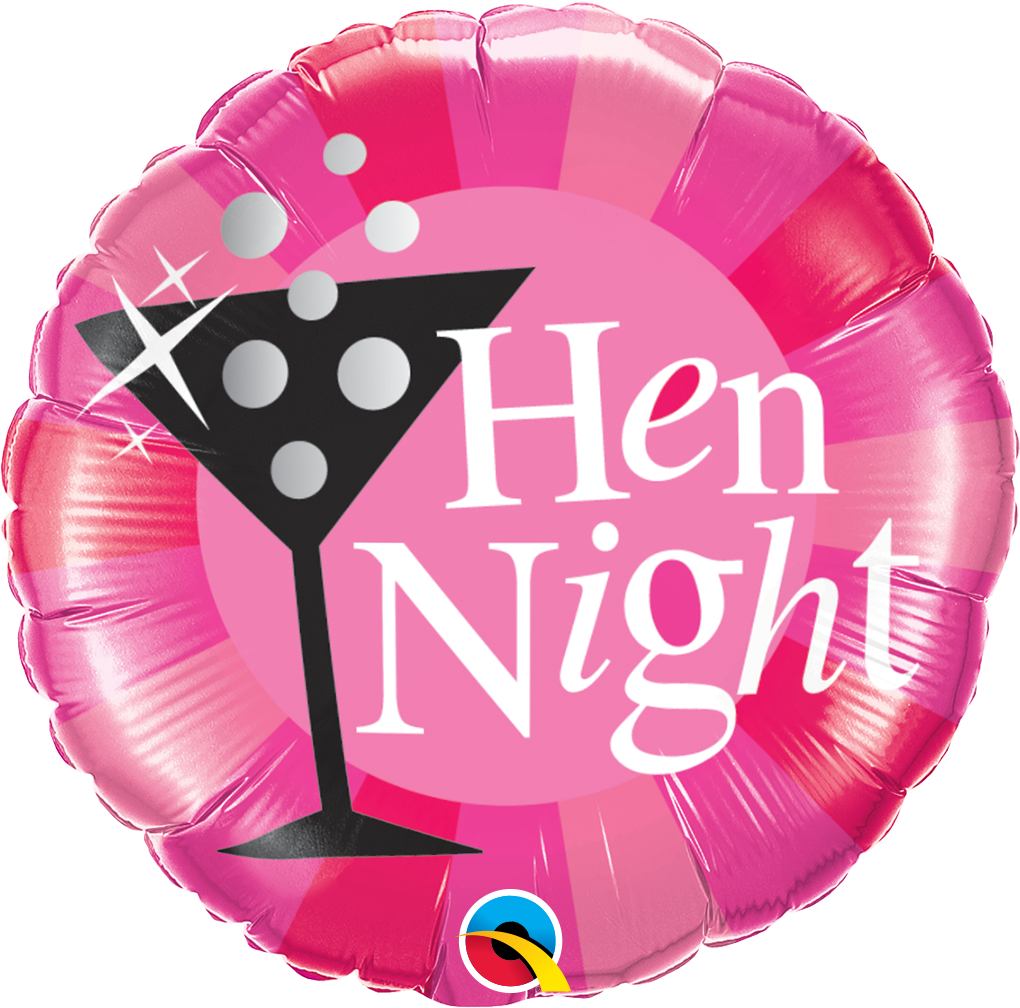 Foil balloon in round shape in pink color and inscription Hen night - Bachelorette party.