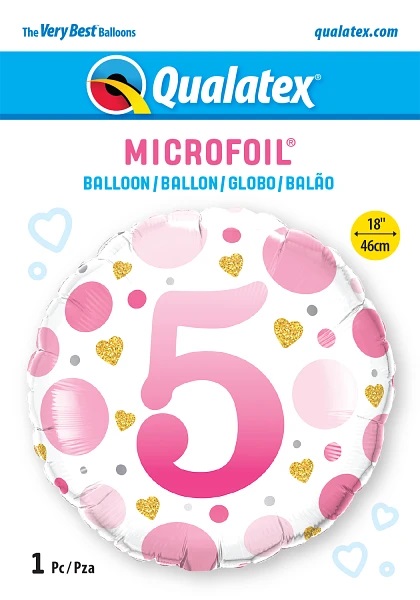 18" balloon - hearts number 5
