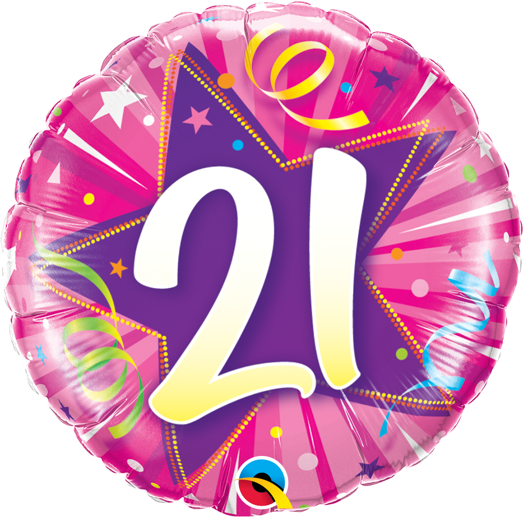 Foil balloon in round shape in pink color with number 21.