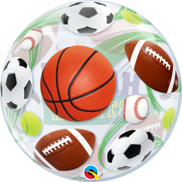 Bubble balloon with sport balls and inscription Happy Birthday!