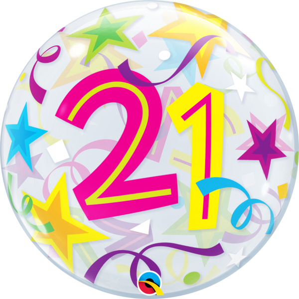 Bubble balloon with colorfull stars and number 21.
