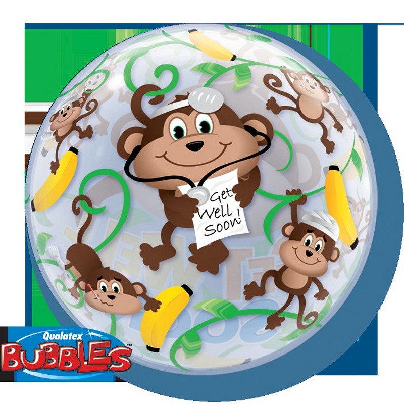 Bubble balloon with Monkeys and inscriprion "Get well soon!".