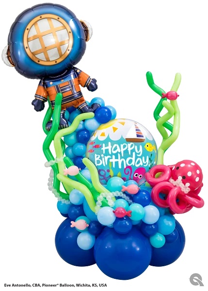 Balloon with a sea motif and the words Happy Birthday.