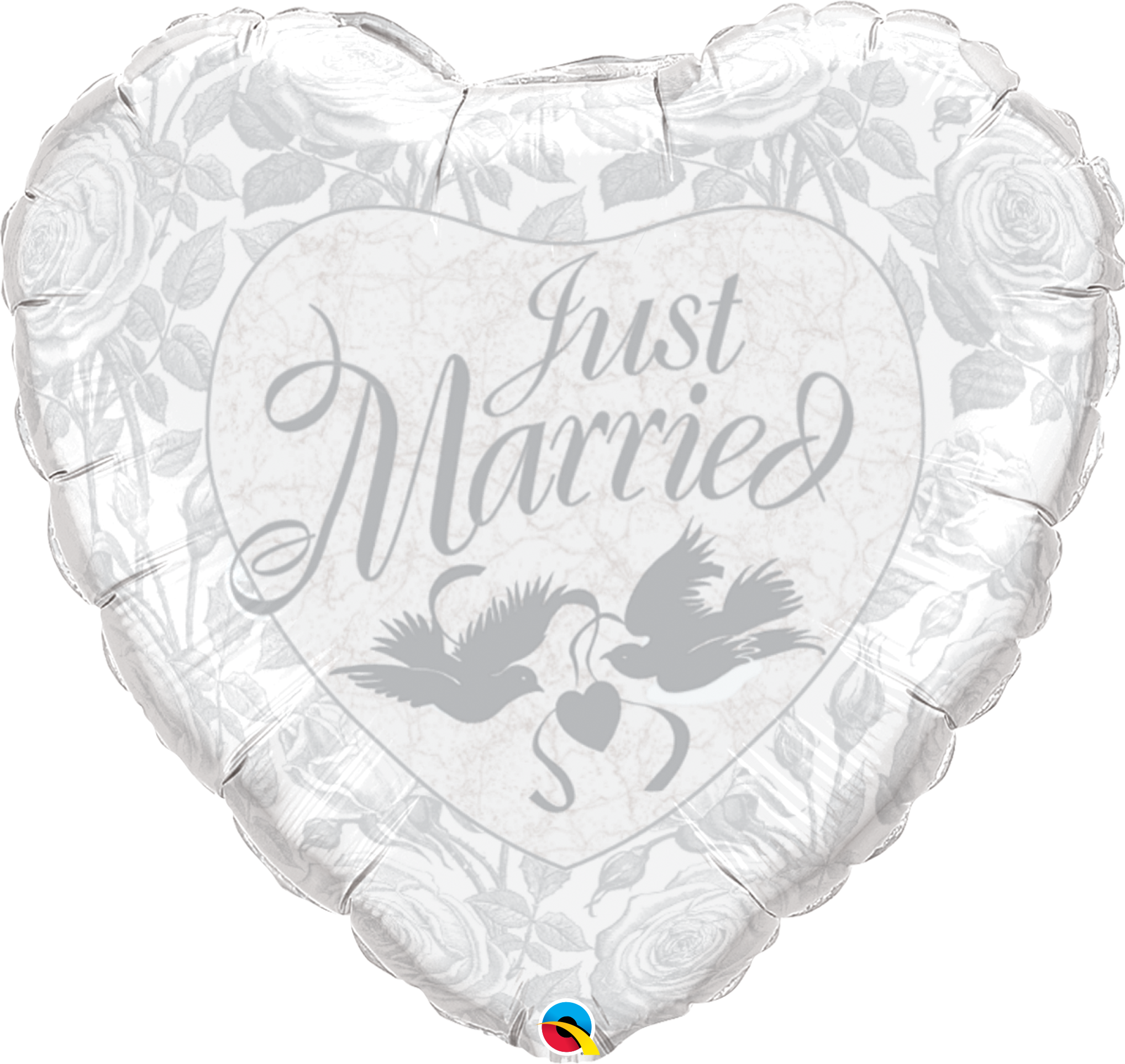 Foil balloon in heart shape with inscription "Just Married", size 91cm.
