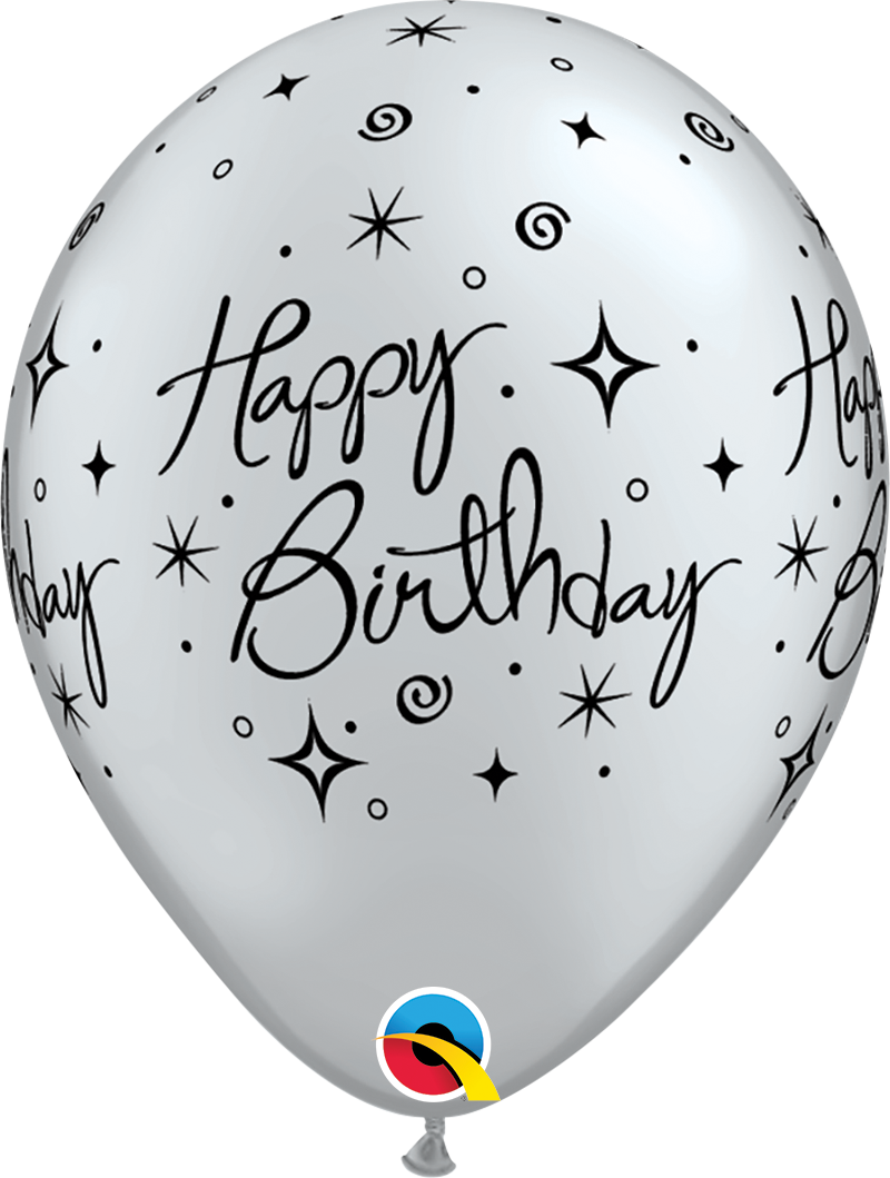6pcs of metallic balloons in silver color with inscription Happy birthday, diameter 28cm.