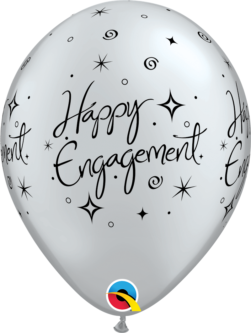 6pcs of metallic balloons in silver color with inscription Happy Engagement, diameter 28cm.