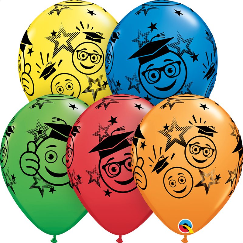25pcs of pastel balloons in mix of colors with happy faces and graduation motives, diameter 28cm.