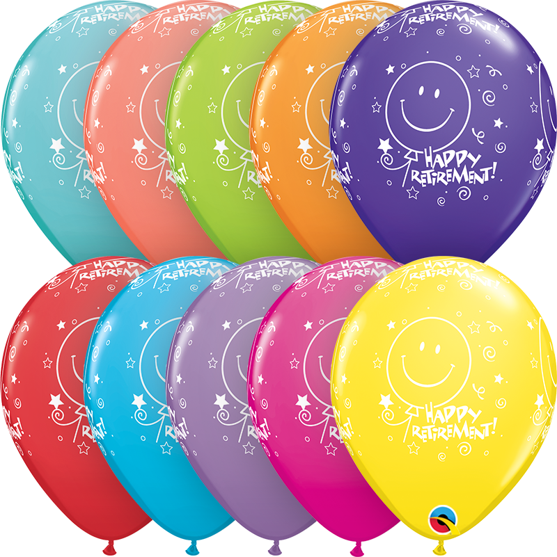 6pcs of pastel balloons in mix of colors with Happy retirement! print, diameter 28cm.