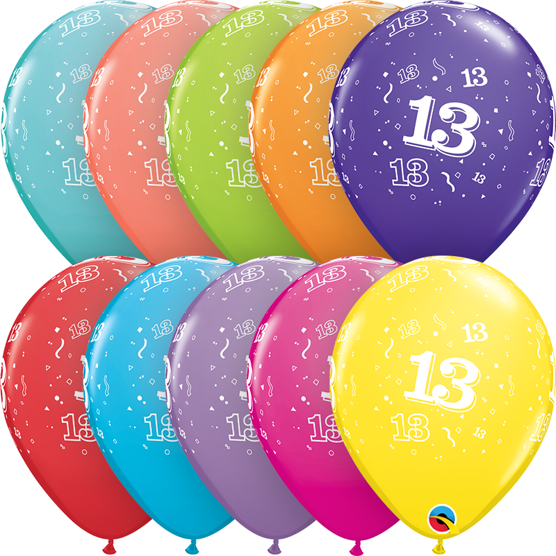 6pcs of pastel balloons in mix of colors with number 13, diameter 28cm.