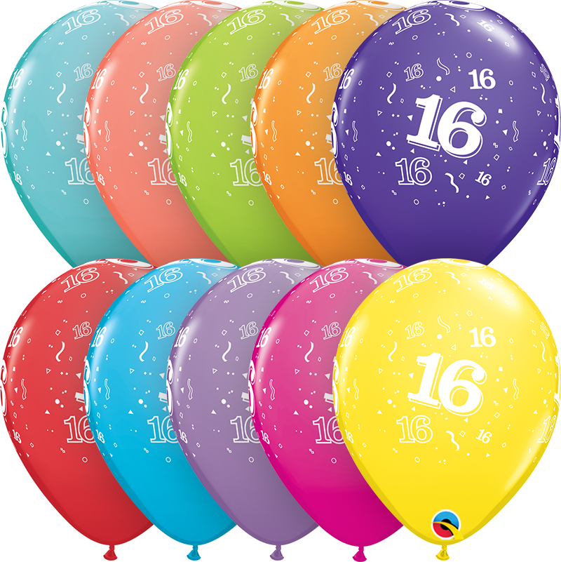 6pcs of pastel birthday balloons in mix of colors with number 16, diameter 28cm.