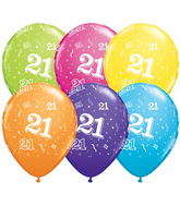 6pcs of pastel balloons in mix of colors with number 21, diameter 28cm.