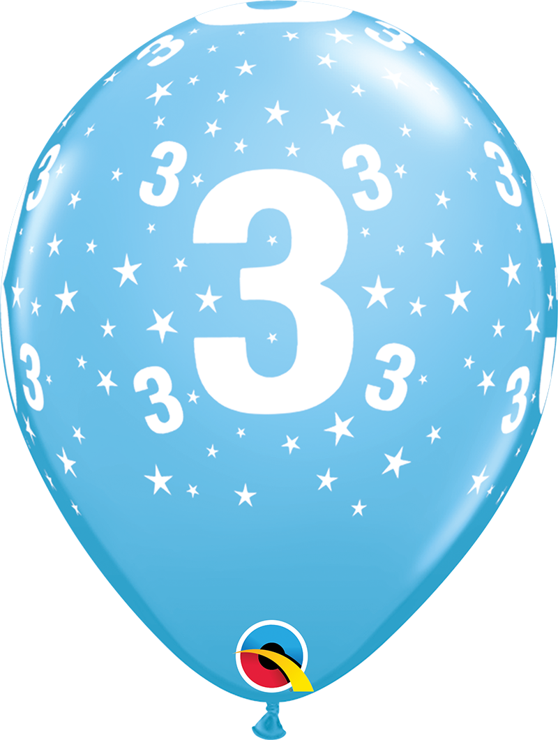 6pcs of pastel balloons in blue color with number 3, diameter 28cm.