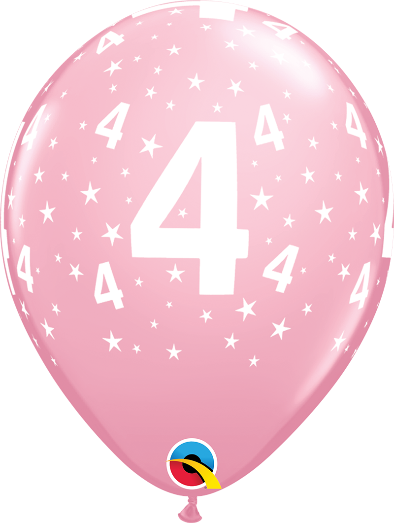 6pcs of pastel balloons in pink color with number 4, diameter 28cm.