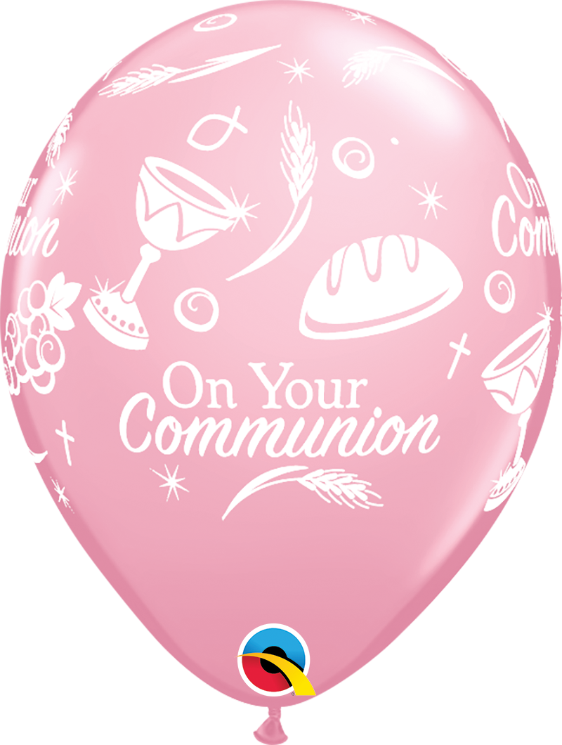 6pcs of pastel balloons in pink color with inscription On your Communion, diameter 28cm.