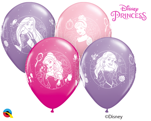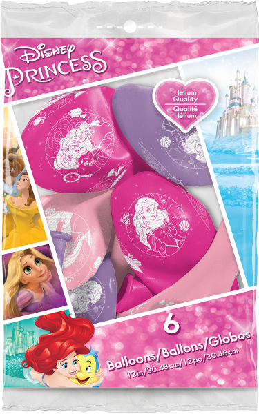6pcs of pastel balloons in pink&purple color with Princesses from Disney cartoons, diameter 30cm.