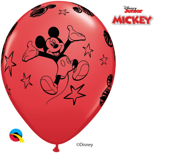 6pcs of pastel balloons in red color with Mickey Mouse print, diameter 30cm.