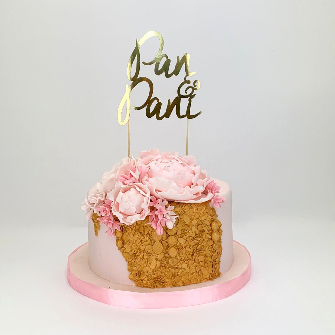 Cake decoration in shiny gold color - inscription Mr. and Mrs., the height of the decoration is about cm.