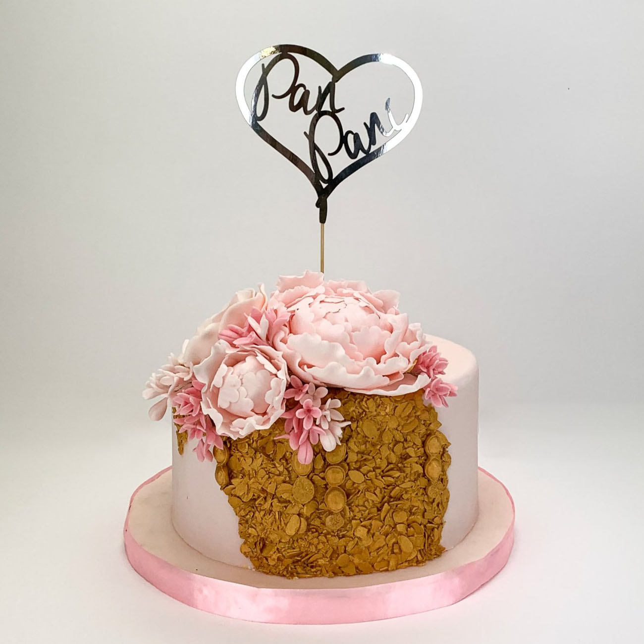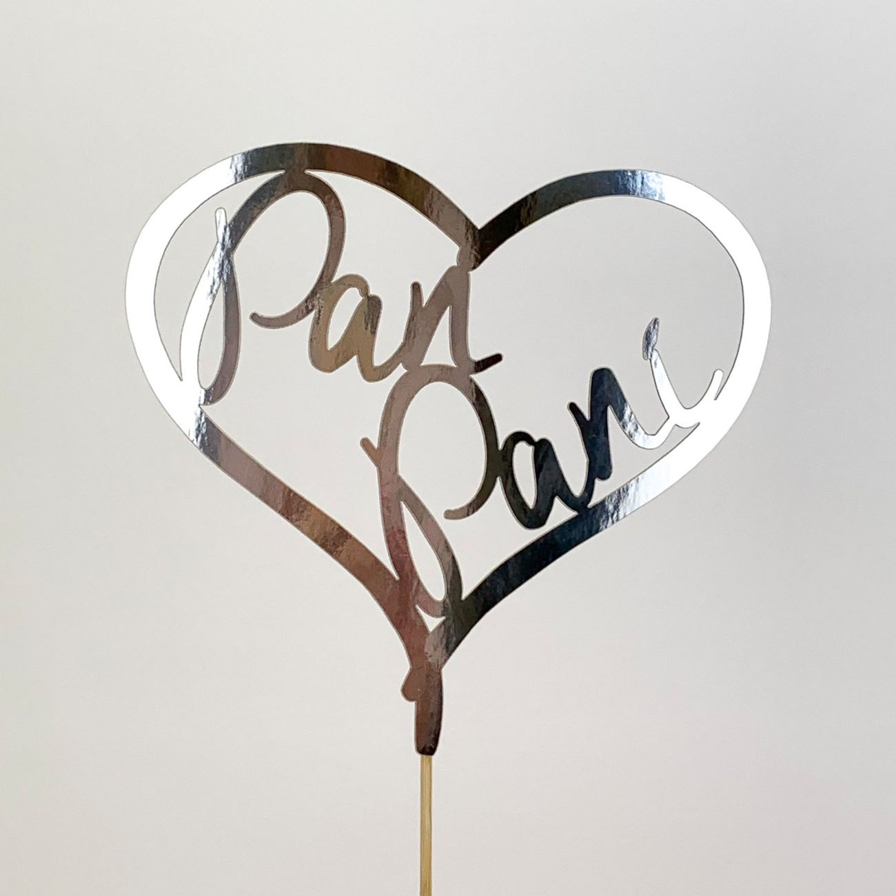 Cake decoration in shiny silver color - inscription Mr. and Mrs., the height of the decoration is about cm.