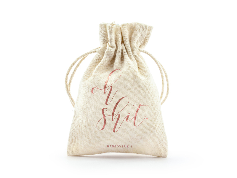 Retractable cotton bags with rose gold inscription Oh shit (Hangover kit - hangover helper).
