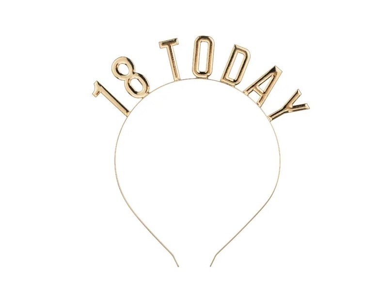 Headband in gold color with the inscription 18 TODAY.