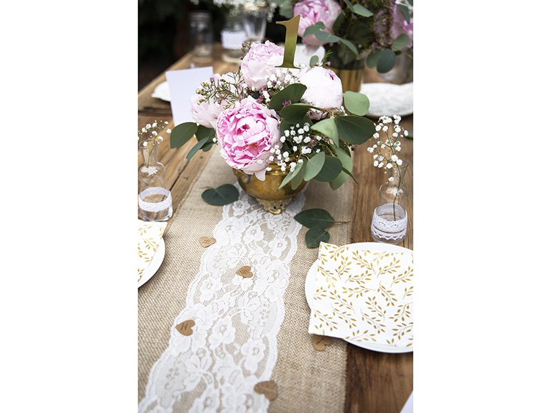 Jute decorative bedspread with lace, suitable for decorating a table in a natural style.