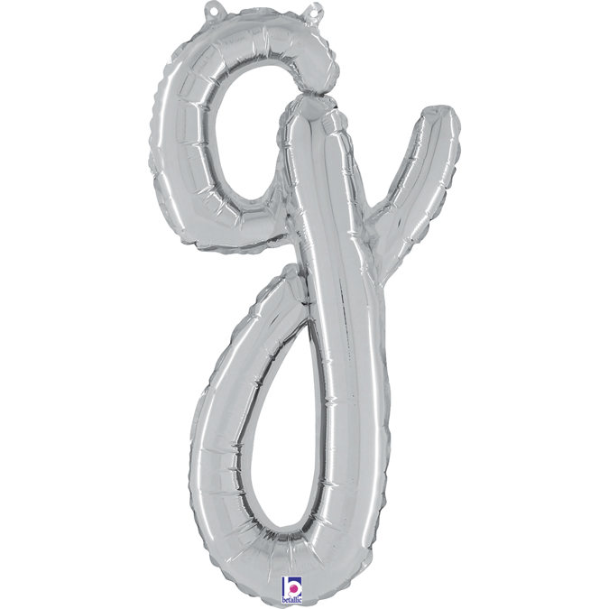 Foil balloon in shape of script letter G in silver color. Balloons are in single pack.