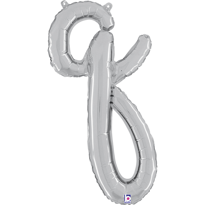 Foil balloon in shape of script letter Q in silver color. Balloons are in single pack.