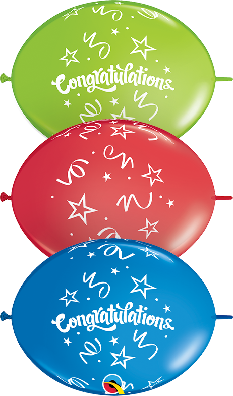 Connecting balloons in mix of colors - red, green and blue color with "Congratulations" print, 10pcs packaging.