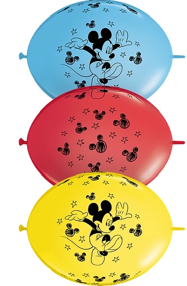 Connecting balloons in a mix of bright colors and Mickey Mouse print, 50 pcs in a pack.
