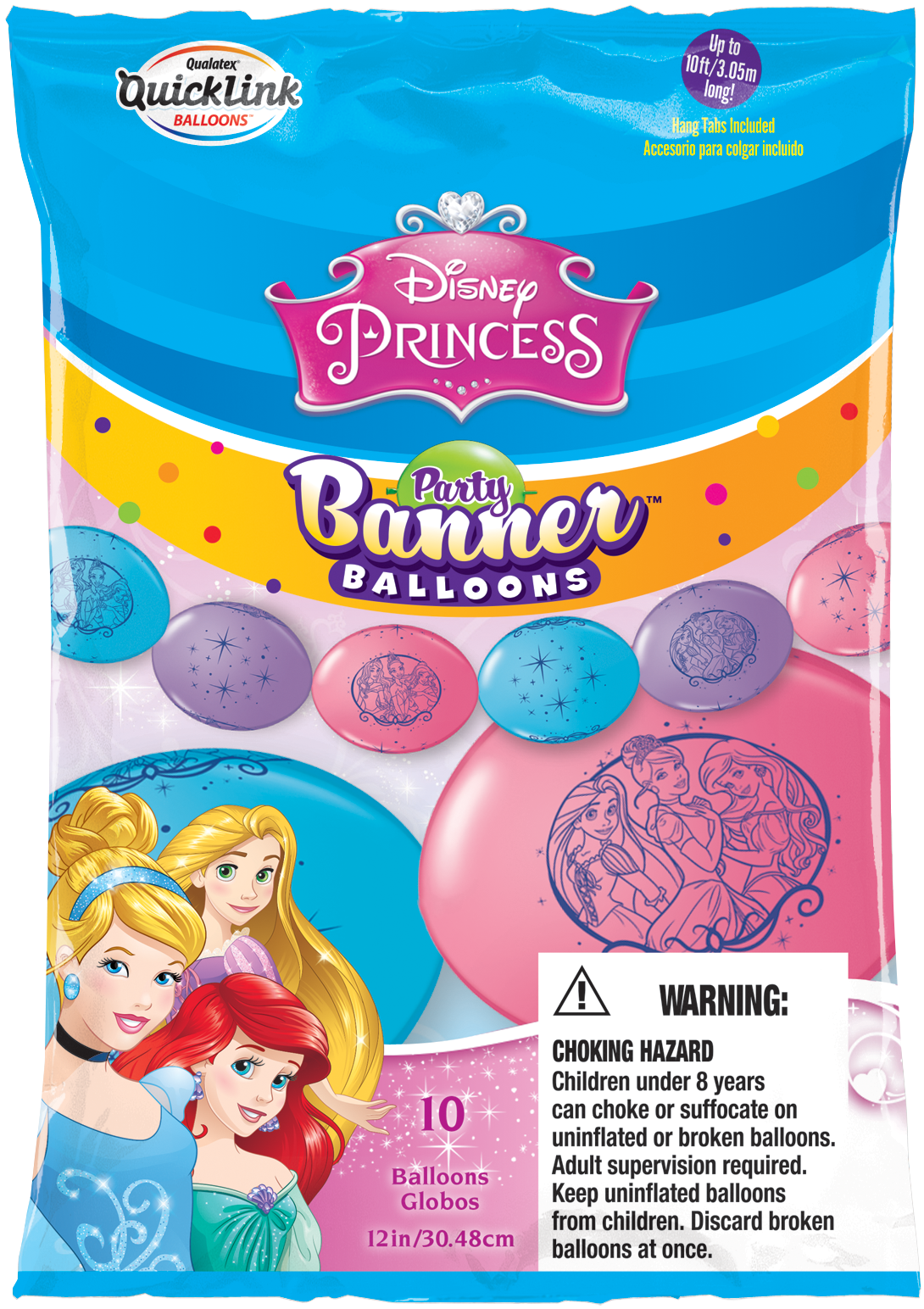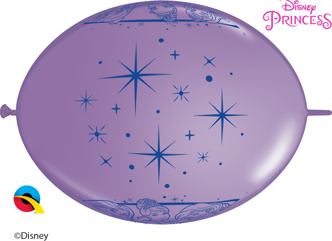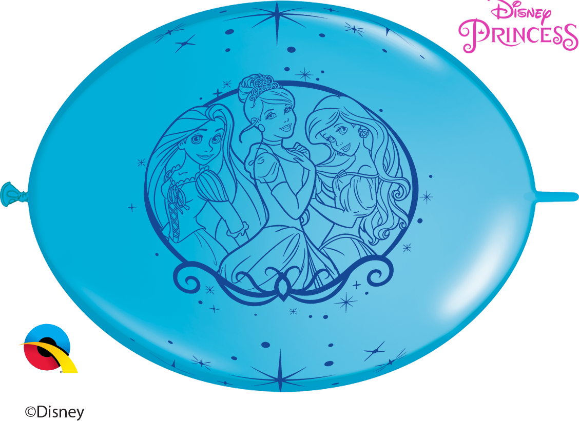 Connecting balloons in pink, blue and purple colors with Princesses print, 10pcs packaging.
