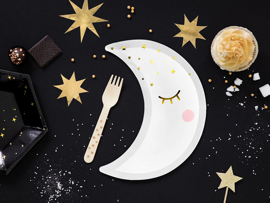 Paper plates in the shape of a marigold in white.