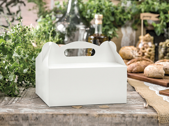 Decorative cake box made of white paper.